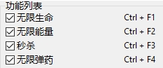 四项修改器包括无限生命、无限能量、秒杀和无限弹药,这些功能极大地增强了玩家的战斗优势。