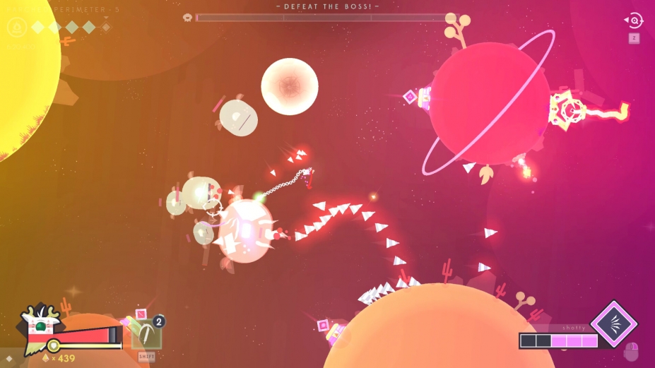 《Baseless》是一款无重力行星跳跃射击游戏。玩家将化身太空战士,通过反作用力射击实现星际弹射,在360°失重战场中穿梭跳跃。用创意弹道摧毁敌人、收集奇幻武器,并与萌系外星盟友共同探索银河系,展开一场为拯救家人而战的炫酷太空芭蕾!