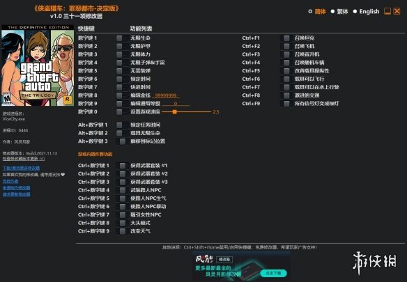 >>>侠盗猎车手罪恶都市重制版v1.0三十一项修改器风灵月影版