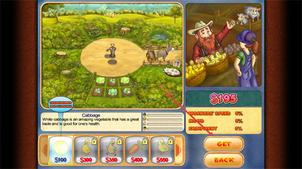 4、选中卷心菜种子后,点击【GET】按钮,即可将种子种植到对应区域,完成卷心菜的种植步骤以推进流程。