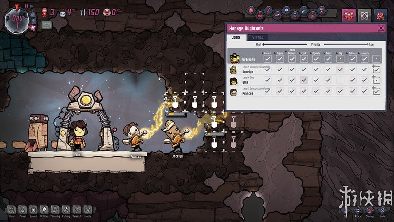 玩家需要在一个封闭的地下环境中管理殖民地的各种资源,包括食物、水、氧气和电力。