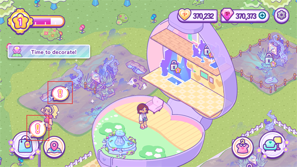 4、主场景中带标识的元素是互动任务点,点击这些区域完成任务,可获取资源用于装饰家园。
