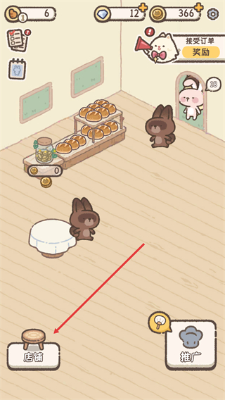 1、与喵喵共同经营面包房,专注为客人提供多样美味面包,让客人收获满满的饱腹感与幸福感。