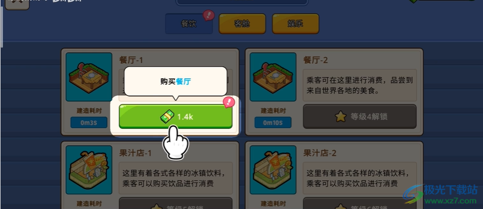 2、然后需要画风一定的金币去建造游戏中第一个建筑物餐厅。