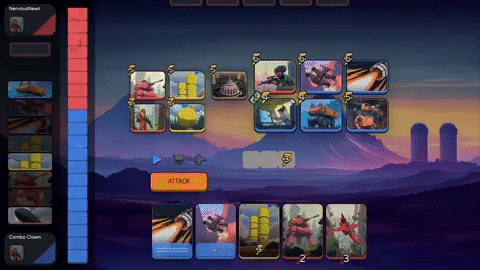 开始战斗后玩家们可以长按卡牌查看卡牌的信息,卡牌下方是可以对地方造成的伤害,玩家们每回合的行动力有限。