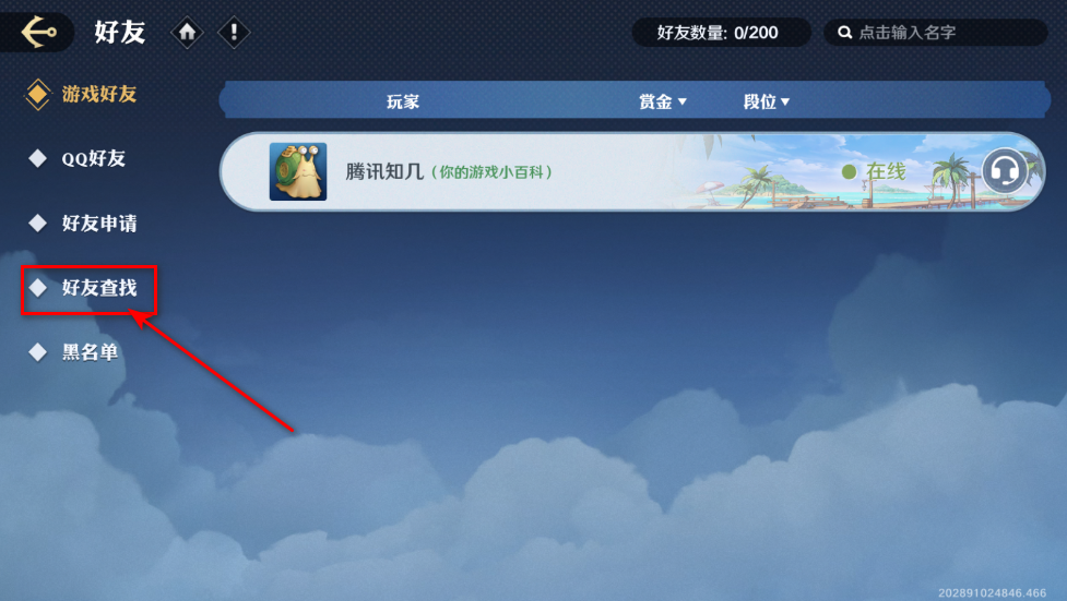 2、然后选择好友查找