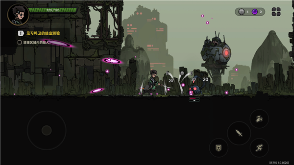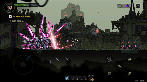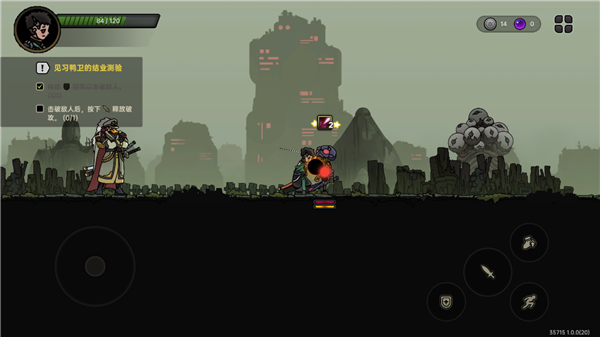 3、紧张刺激的战斗:游戏采用快节奏的2D平台动作玩法,玩家需要灵活操作角色进行跳跃、攻击和防御,击败前来袭击的怪物,获取资源以在这个残酷的世界里存活得更久。