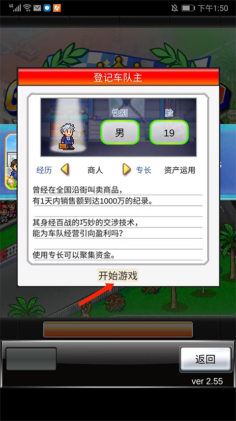 2、接着选择好车队名称和队伍颜色,选择【下一页】选项,设定好登记车队主信息,选择【开始游戏】选项,