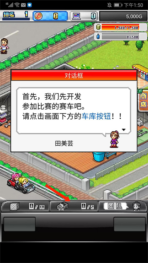 4、首先选择下方【车库】选项,开始开发一台参加比赛的赛车,