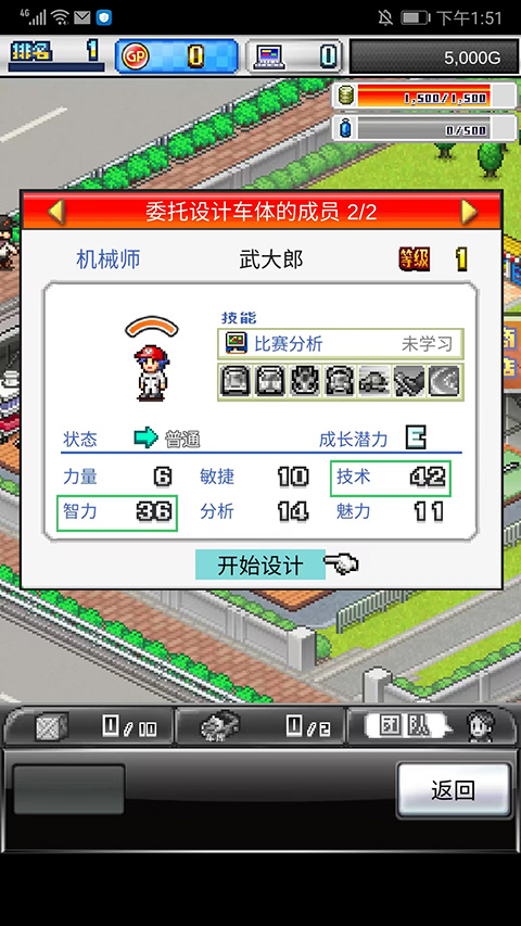 所以在雇佣人才组成团队的时候,大家可以先有个初步构想,如一队主魅力值,擅长宣传和研究点数的累积;二队技术优先,负责赛车的开发和部件改良。