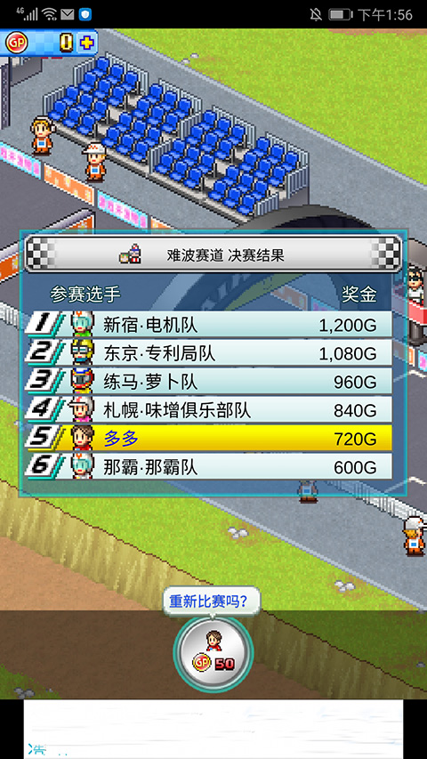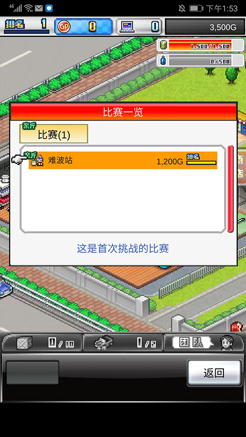 10、拥有赛车后,我们就可以开始参加比赛了,在比赛中夺得名次可以获取奖金还能提升名气,选择左下角【比赛】选项,选择比赛项目,这里以【难波站】为例,