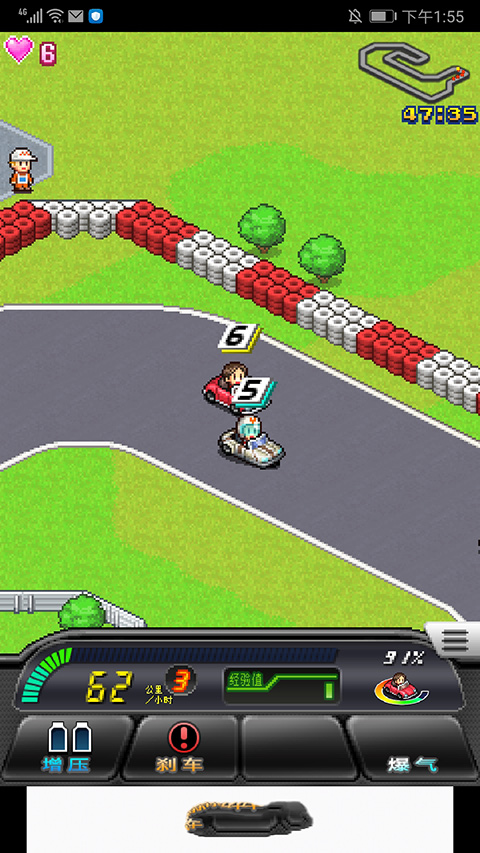 12、开始比赛,包括增压、刹车和爆气可以选择使用,赛车手上方的数字则代表当前的名次,