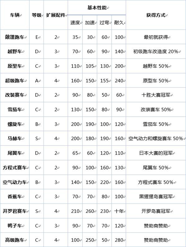 冲刺赛车物语2赛车图鉴