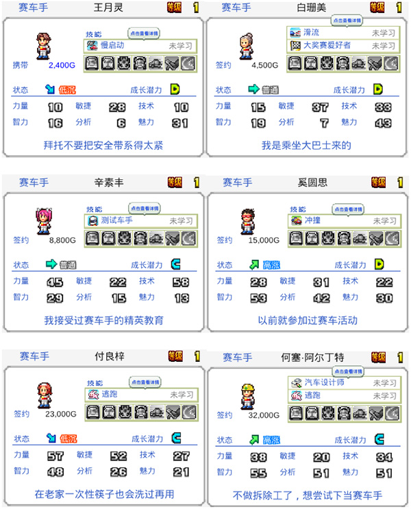 冲刺赛车物语2车手大全