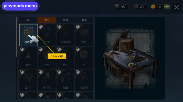 二、比如茅草基座制造需要木锤和茅草,首先得造个木锤,木锤可是制作其他高级物品必要的工具之一,木锤制造方法只需要1块木板和2份茅草就可以了,我们收集到足够的材料在工艺间点木锤图标然后点击右下角的工艺就制作成功了。