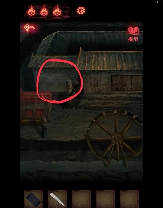 3、去第二个场景老头那里将【蜡烛】点燃(左侧火堆),放到右侧香炉中。(香炉里还差3个物品)