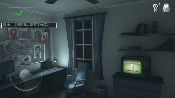 3、进入游戏如图,玩家被困在了一个房间当中;