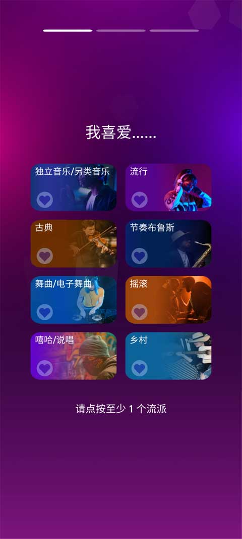 1、打开游戏之后第一步就是选择自己喜欢的音乐派别、性别和年龄,然后开始开启第一首歌关卡。