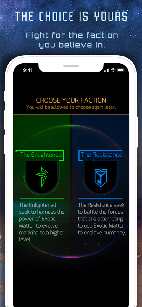 Enlightened(启蒙者)阵营致力于把握这种能量赋予人类的力量。Resistance(反抗者)阵营则奋起抵抗,保护未受到侵害的人类。
