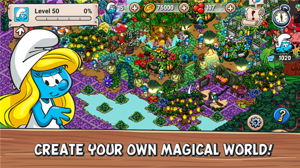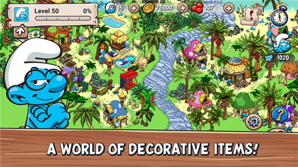 可爱的蓝精灵谁会不喜欢呢?蓝精灵村庄这款游戏就是以以童话故事中的蓝精灵为主角,为我们描绘了一幅可爱的游戏画面。蓝精灵村庄被格格巫破坏了,现在,大家要在蓝精灵爸爸的带领下重建这个村庄。这是一款有趣而可爱的社交游戏,但是也并不是必须要连接网络的,同样支持离线模式,但是连线是它的最大乐趣。