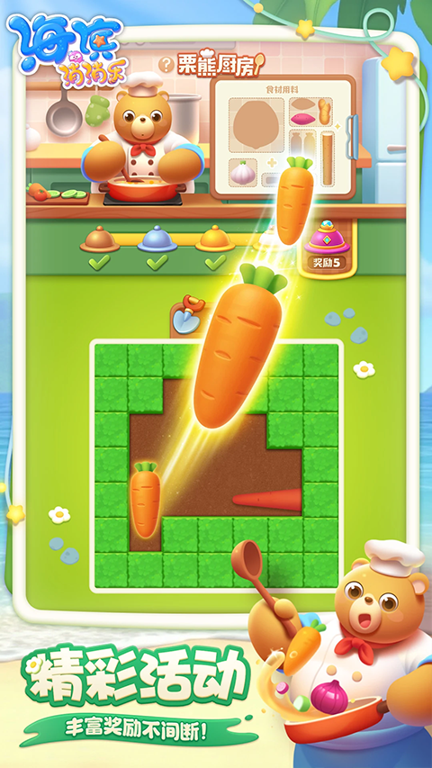 强力推出6种新鲜玩法,每种关卡类型都有小动物们的陪伴哦,精心设计的225关,给您带来清新丰富的体验,更有全新特效效果,消除轻松又爽快。呆萌可爱的小浣熊变身船长,带领小伙伴们畅游海滨,调皮的小鱼、Q弹的软糖、易碎的蜂蜜罐、会跑的玫瑰花、愤怒的小海星、美丽的瓶中蝶……旅途中有更多惊喜等你发现!