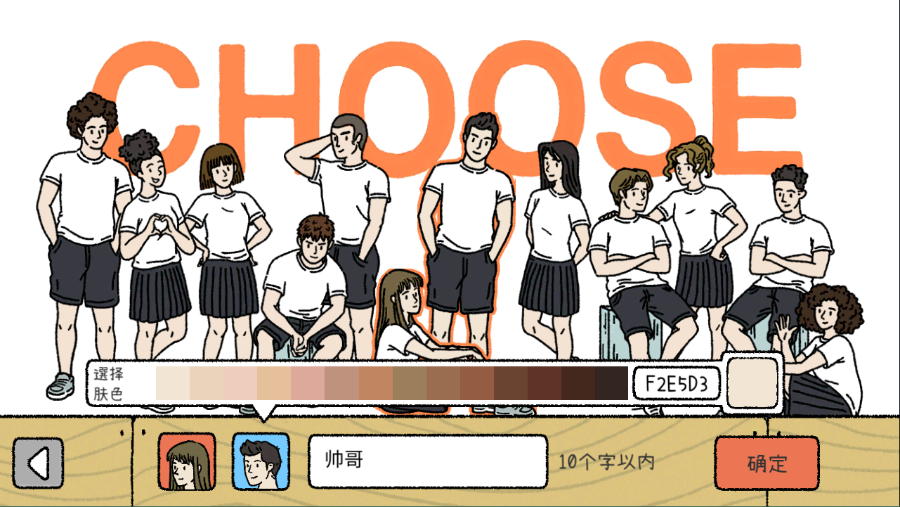 ②在以上人物中选择角色,并为其取名