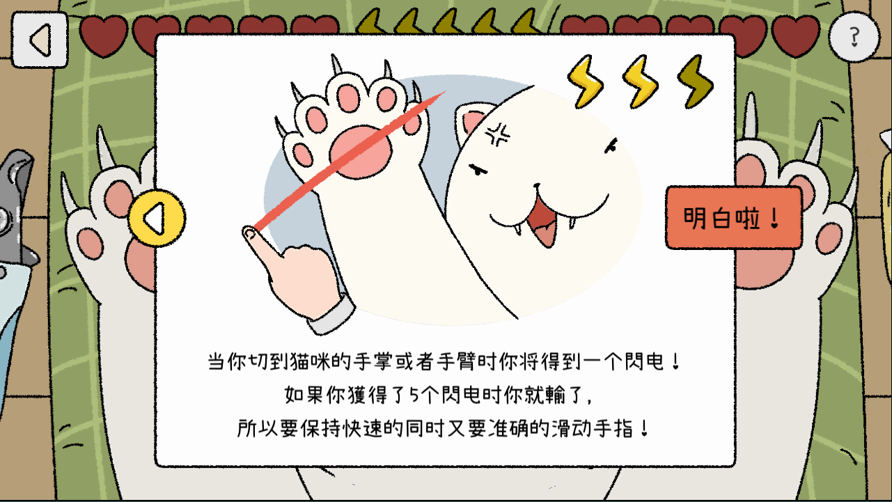 顺利通过游戏,猫咪们就会送给你爱心!