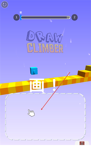 1、进入DRAWCLIMBER关卡,按提示在绘制区域画腿,助力蓝色方块前进。