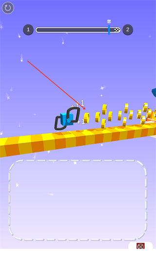 4、方块移动过程中收集金币,借助画的腿继续前进,向关卡终点推进。