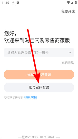 3、在账号密码登录页面,填写账号和密码,勾选相关协议后,点击登录完成账号登录。