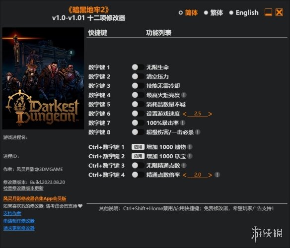 >>>《暗黑地牢2》v1.01.Plus十二项修改器风灵月影版