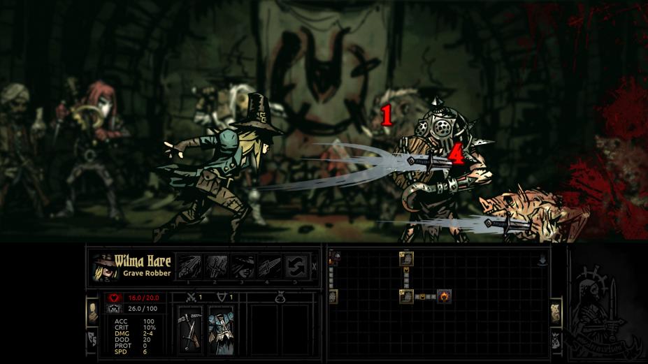 在随机生成的地牢中探索,收集资源和装备,提升角色的能力,同时注意管理角色的压力,避免角色因压力过高而崩溃。