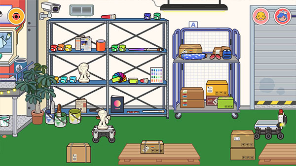 5、继续左滑进入染色区,在货架上选择颜料,为雕塑上色。