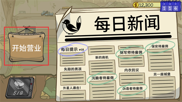 1、点击【开始营业】进入游戏,查看【每日提示-18】获取当日信息,了解新商机和事件以便后续交易。