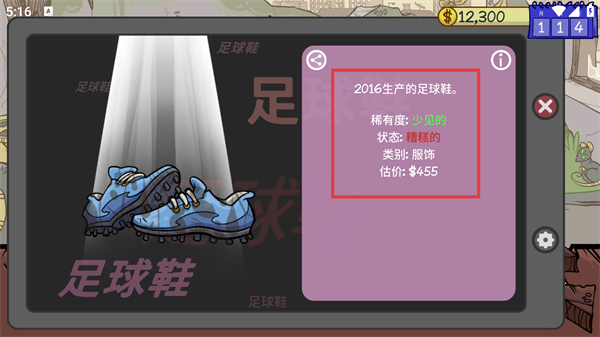 3、查看【足球鞋】详情,了解【2016-3星-糟糕的-服饰-455】属性,为后续交易议价做准备。