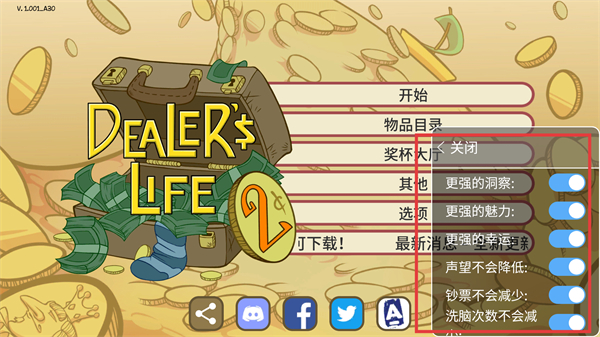 1、在内置菜单里,可开启【更强的洞察】【更强的魅力】等功能,这些功能能提升交易时的优势,助力经营。