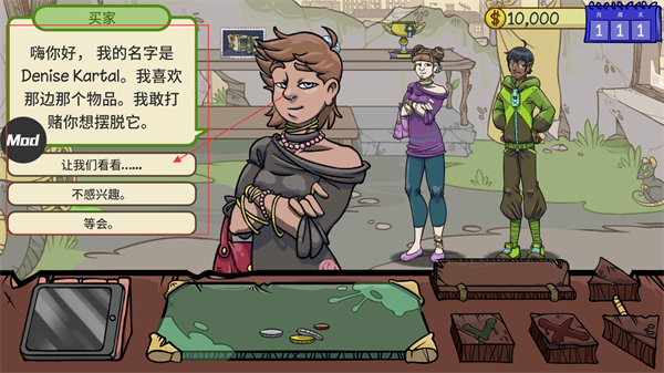 2、点击【开始】按钮进入游戏,开始经营自己的旧货交易生意,开启赚钱之旅。