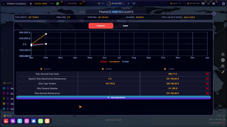 造船厂选择:从不同的造船厂中进行选择,每个造船厂都有不同的延迟和订购新船的价格,可以根据您的需求做出更具战略性的决策。