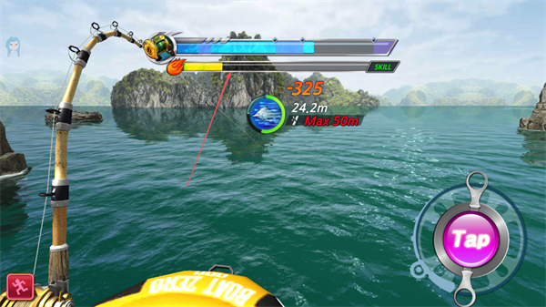 2、鱼咬钩后,点击Tap按钮收线,开始拉扯鱼。