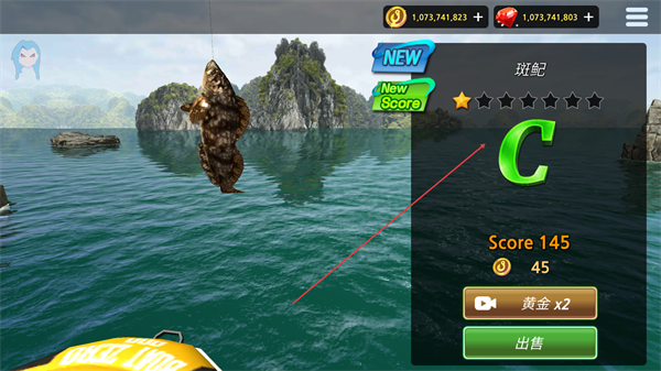 4、钓起斑纪后,可选择黄金×2翻倍奖励或点击出售获取收益。