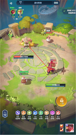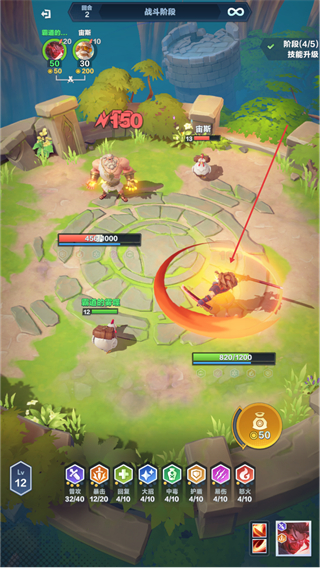 2、触发战斗,角色释放技能攻击敌方,造成伤害并推进战斗进度。