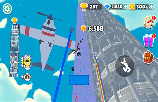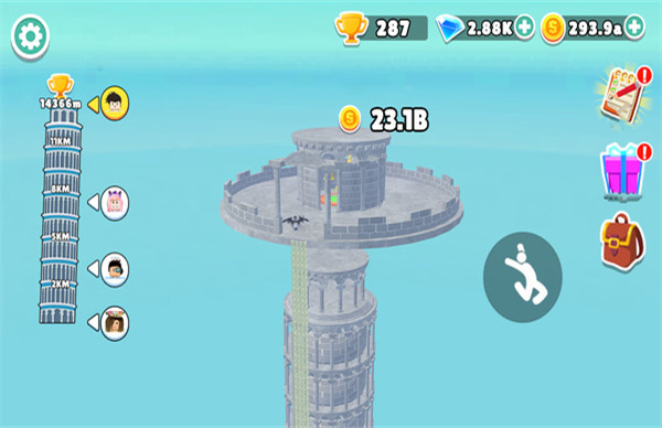 - 勇登高塔是一款简单好玩的跑酷类游戏,主打刺激的游戏模式,操作门槛低易上手,搭配丰富的顶级任务,玩起来乐趣十足,置身刺激的飞行跑酷世界,能沉浸式感