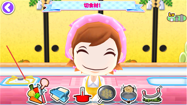 2、开启制作后会进入切食材等操作界面,点击对应的食材处理工具,进入具体的食材操作步骤,准备完成菜品所需的基础食材处理工作。