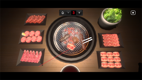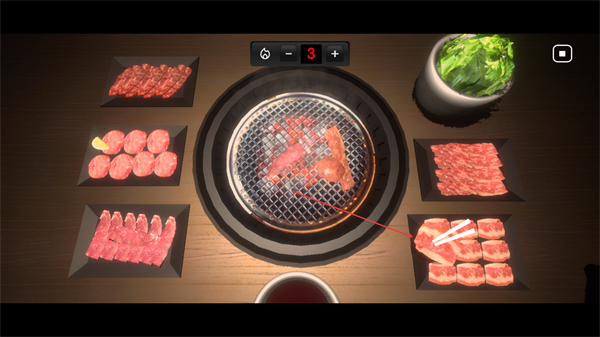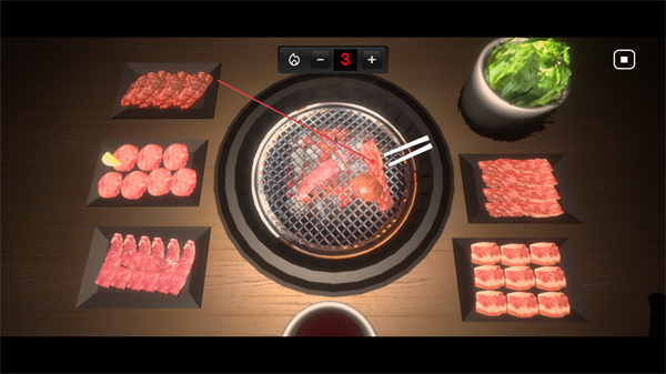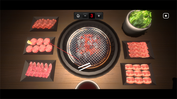 2、极致真实的烤肉模拟,还原炭火燃烧的动态效果、食材受热后的纹理变化,不同肉类的烤制时长、火候要求各不相同,操作手感细腻贴合现实。