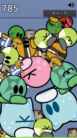 4、当界面内角色堆积至一定程度,出现再来一局按钮时,点击该按钮可重新开始游戏流程。