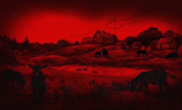 1、高饱和红与深邃黑为主色调,扭曲线条与诡异光影营造压抑氛围,采用暴力场景艺术化处理,强化不安的情绪。