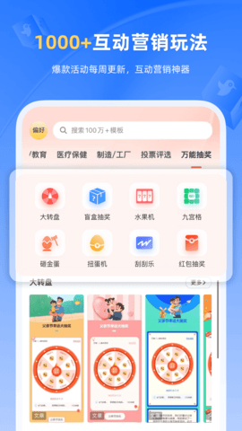 答:有,支持大转盘、盲盒、红包、九宫格、砸金蛋等多种玩法,很有趣。