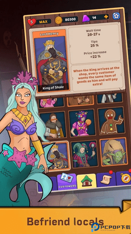 2、从生活小药品在到大型的工具,魔法商店中应有尽有更好的满足顾客的需要获取金币。