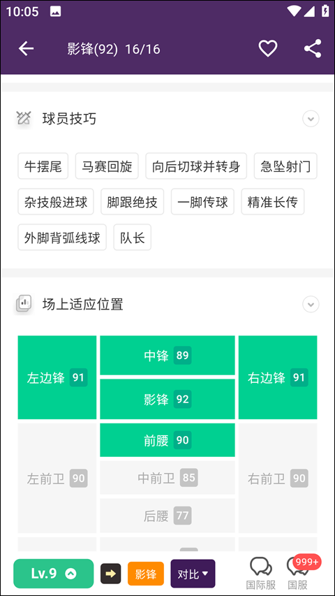 4、最后往下滑动还可以看到球员的技巧、适应位置等详细信息。