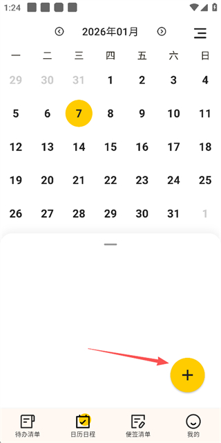 2、在日历日程页面点击右下角的黄色加号按钮,进入待办清单编辑页面。
